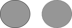 This process is called regularization, and the sets we get at the end are called solids (hence Requicha’s definition). Note though that there are actually two kinds of regular sets: closed sets and open sets. The other type, open regular sets, satisfy the condition that: